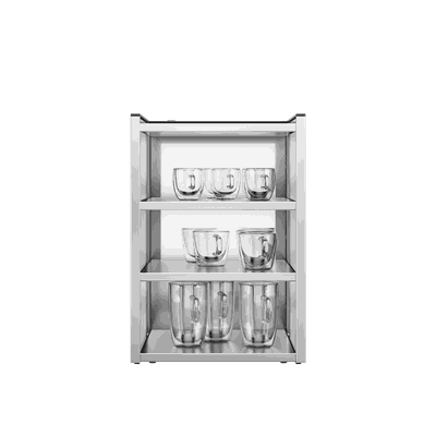 Greifen Sie einfach nach dem Tassenschrank direkt neben der Kaffeemaschine, um eine perfekt vorgewärmte Tasse oder ein Glas zu erhalten. Die schmale Version des Cup Racks spart Platz und bietet dennoch Platz für 320 Tassen.
