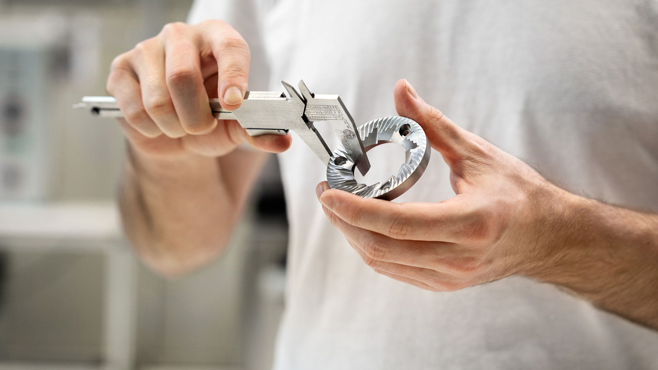 ガイスリンゲンで製造されるWMFのステンレススチールは、高い品質と耐久性が特徴です。旋盤加工やフライス加工から、部品テストや一連のモニタリングに至るまで、すべての工程が社内で行われています。その一例が、マシンの長期にわたる高性能を支えるグラインディングディスクです。